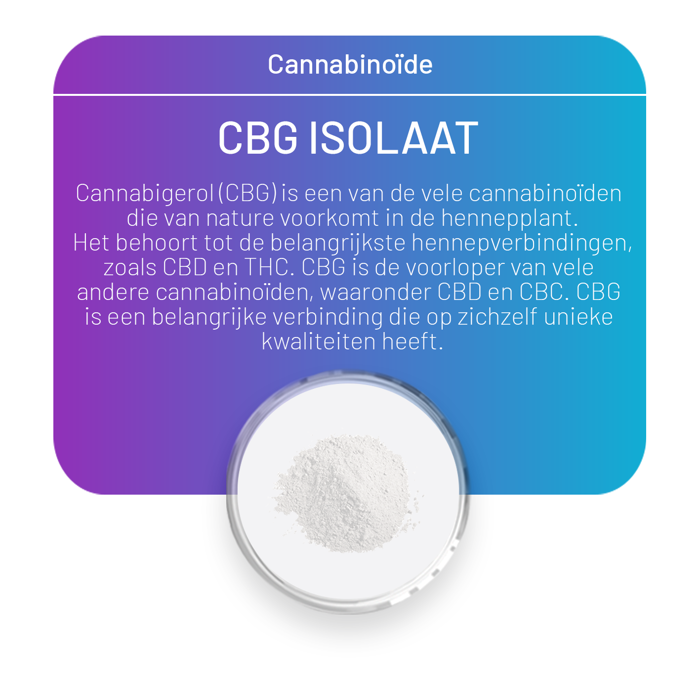 MCT-olie C8 (Kokosolie), Gingko Biloba Extract, CBD Hennepextract (Cannabidol), CBG Hennepextract (Cannabigerol), Plantaardige aroma's